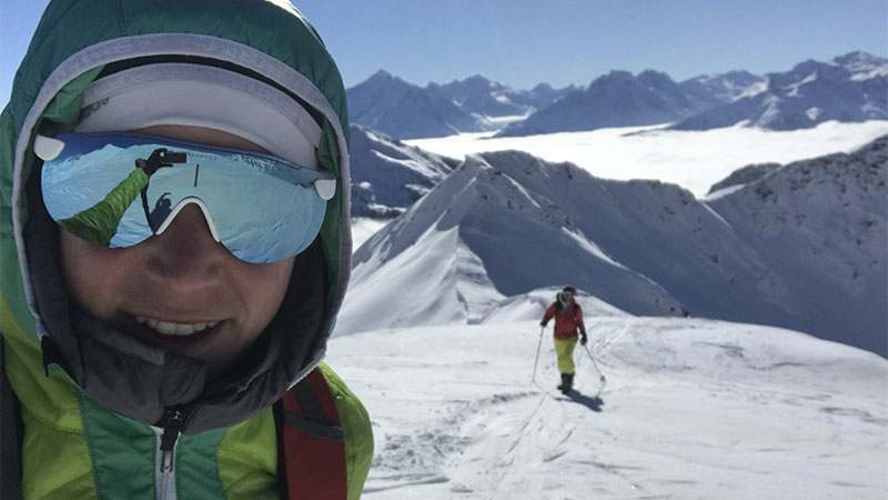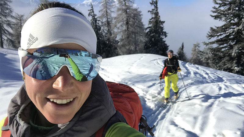 La salita al Col Fetita da Morge è una bellissima classica che permette di sciare su pendii molto ampi esposti a sud-ovest ma noi non ci siamo accontentate e abbiamo cavalcato la cresta in direzione della croce di vetta della Punta Fetita. Da lì siamo ridiscese un pezzo per il vallone che porta a Challancin esposto ad Est con una neve in fase di trasformazione molto bella da sciare.